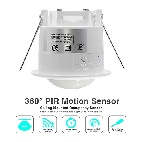 Using infrared pyro electric sensor, Integrated circuit chip and advanced production technology ensure Stable and reliable performance. When someone enters the scope of the PIR it triggers the switch, may be light or any load. When people leave the detection range switch turns off automatically. It has Time & Light control selection to further automate the load.