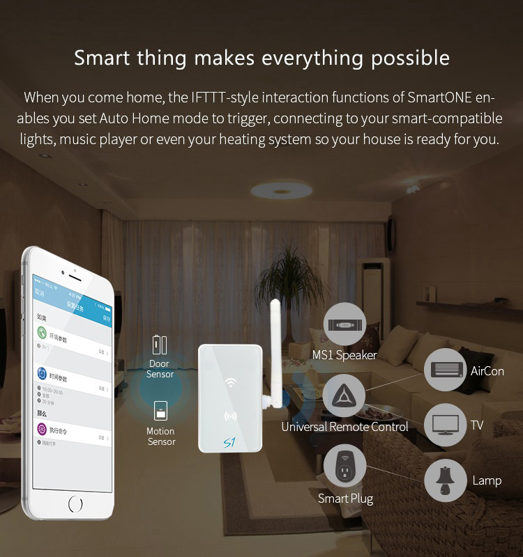 - Program your daily life, trigger Auto Home mode, connect to your smart compatible light, music player and water heater, your house is ready for you.